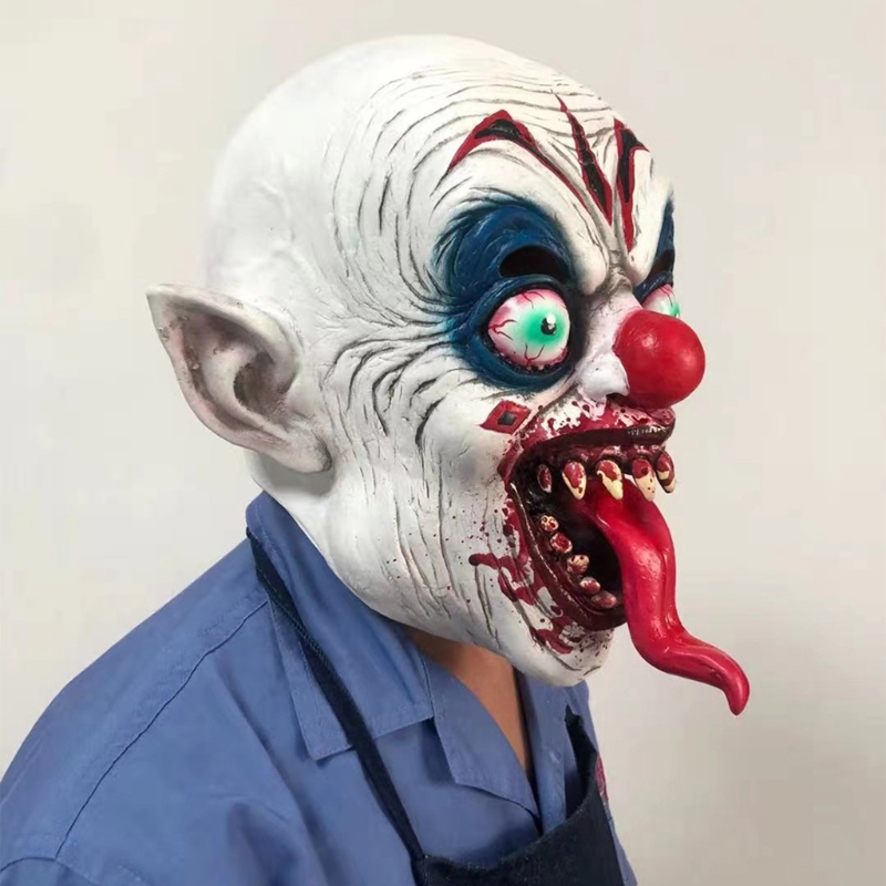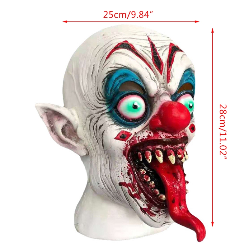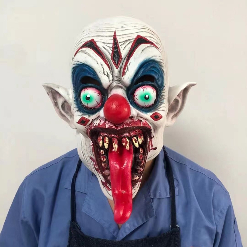 Turn heads and terrify everyone at your next Halloween party with this horrific clown mask! Featuring a bloody long tongue, red nose, and grotesque details, this full-face latex mask is perfect for pranks, costume parties, and Halloween events.